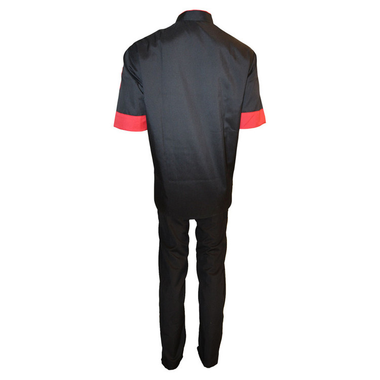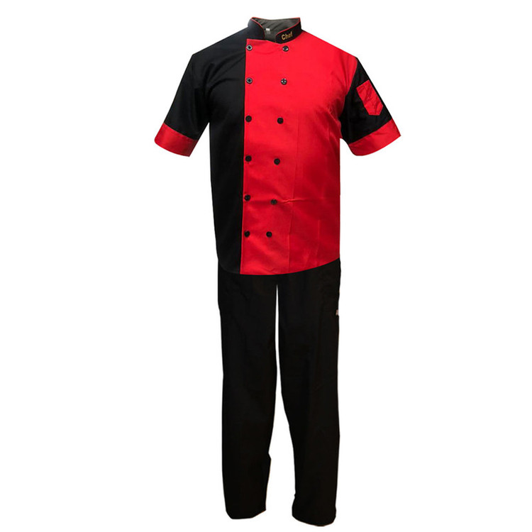 سایر توضیحات: روپوش آشپزی مشکی قرمز با شلوار مشکی