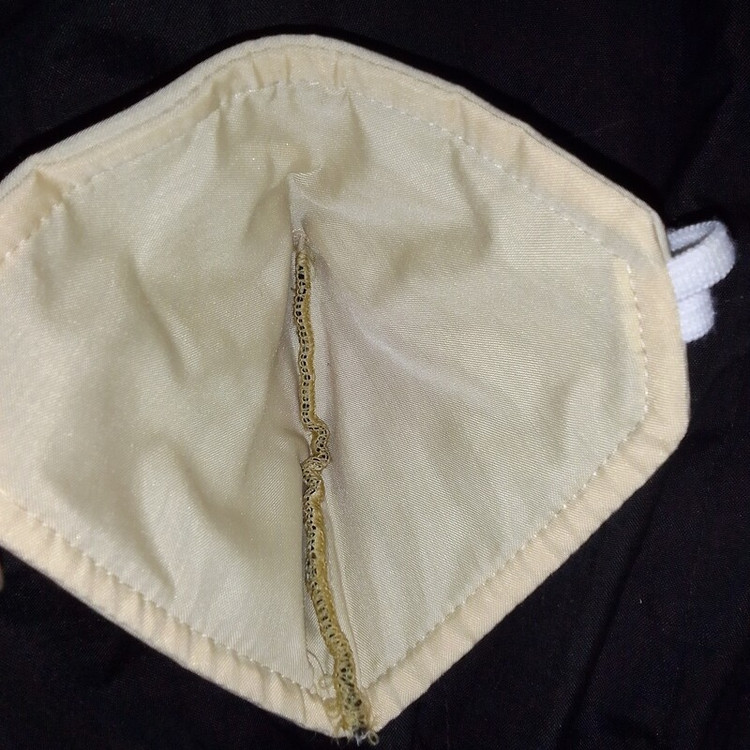 یک لایه نمدی محکم که با دو لایه پارچه نخی با کیفیت بالا دوخته شده و در بالا از فنر برای فیکس بینی استفاده شده